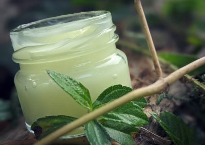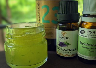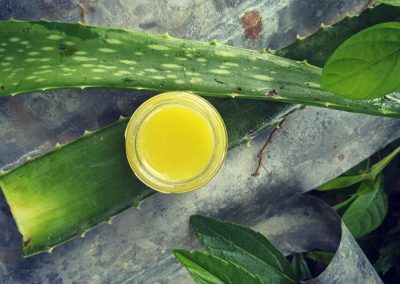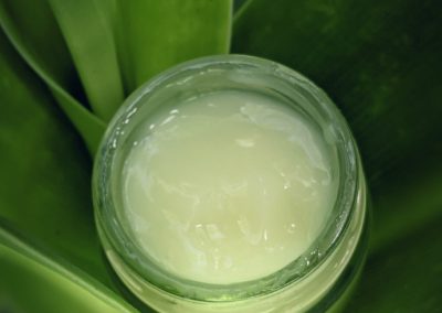 The Aloe vera facial moisturizer (see recipe below), the turmeric coconut oil-based salve or argan oil enriched with essential oil(s) are my go-to, natural facial care products at the moment.