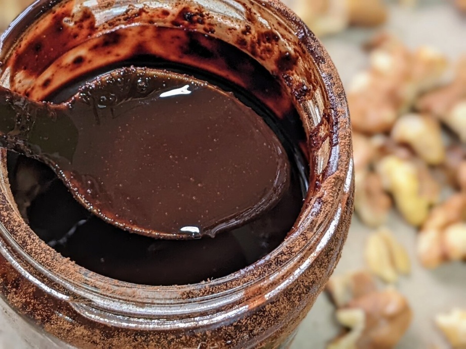 I love the bitter taste of dark chocolate and dark cacao powder. However, if you like it sweeter you can add maple syrup or any other sweetener of your choice. This will also help to thicken the chocolate sauce. If the chocolate sauce seems to liquid add more cacao powder, if it is too thick more coconut oil.