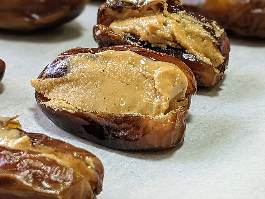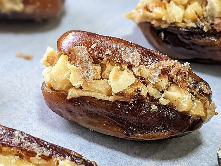Small nutrient-dense sweet treats. These stuffed dates might seem to add a lot of calories but believe me they are so filling and rich that you will only need 1 or 2 to get your sweet, mid-morning or afternoon energy kick.