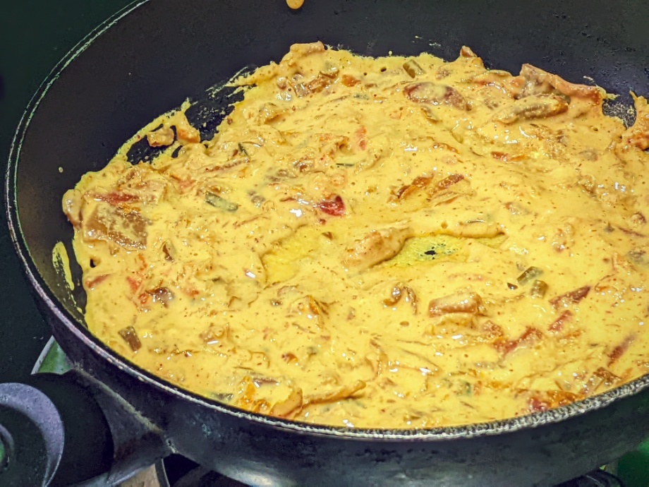 - Over medium heat, heat the cooking oil of your choice in a non-stick pan. Add half of the batter. flatten it out a bit from the top and let cook for a few minutes. Once one side is slightly brown, flip the kimchi pancake.