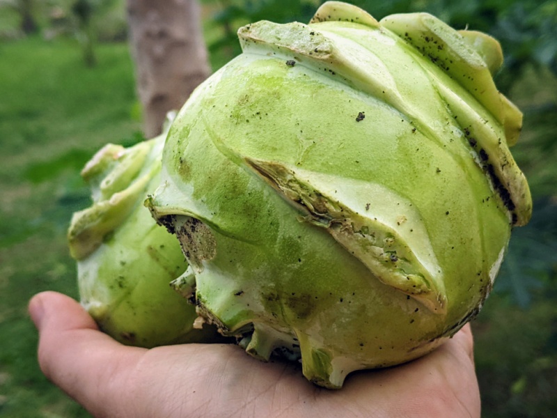 The cute little baby cauliflower heads were organically grown on the Bokor Hydroponics farm which is located on Bokor mountain, about 20 to 30 km from my home. The same goes for the kohlrabi.