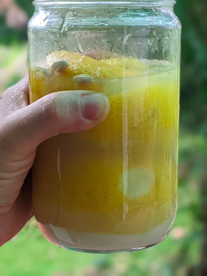 Close the jar tightly and let it sit at room temperature out of direct sunlight. Every few days, open the lid to let the fermentation gas out.