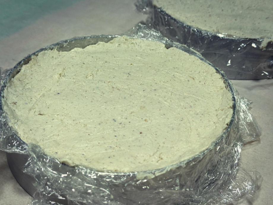 To prepare your cheese molds or springform pans, line them with either baking paper or plastic wrap. This is again to avoid the cheese touching the metal of your mold or springform. Spoon the cashew mix into prepped molds and push it down using a piece of plastic wrap to avoid the mixture from sticking to your hands.