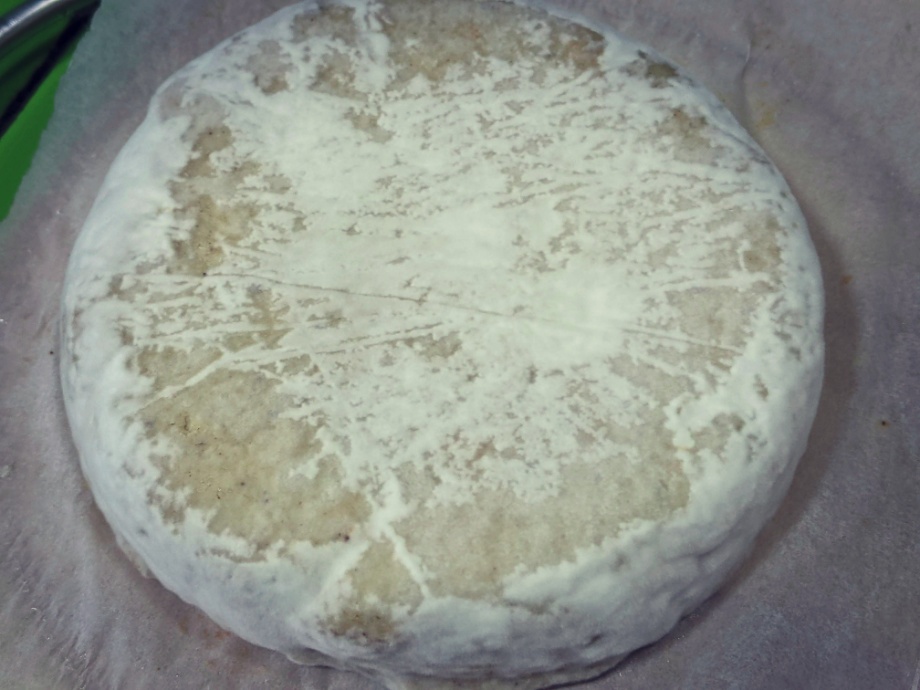 After about 10 days to 2 weeks, the white rind should start to form. Continue flipping the cheeses every day for another 2 to 4 weeks while the white rind will completely cover the cheese. How long you age the cheese is up to you. The longer you let them go the stronger the cheese flavor will be. We prefer ours after 6 weeks.