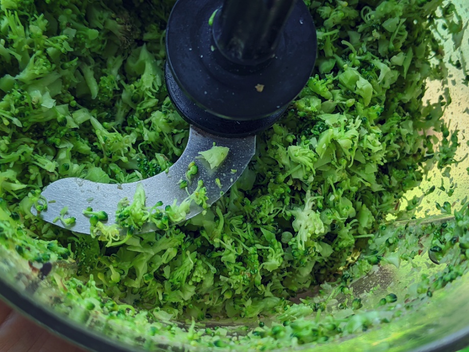 - In the same blender or food processor, pulse the broccoli florets until you are left with small, grain-like pieces. Add to the pinto mixture.