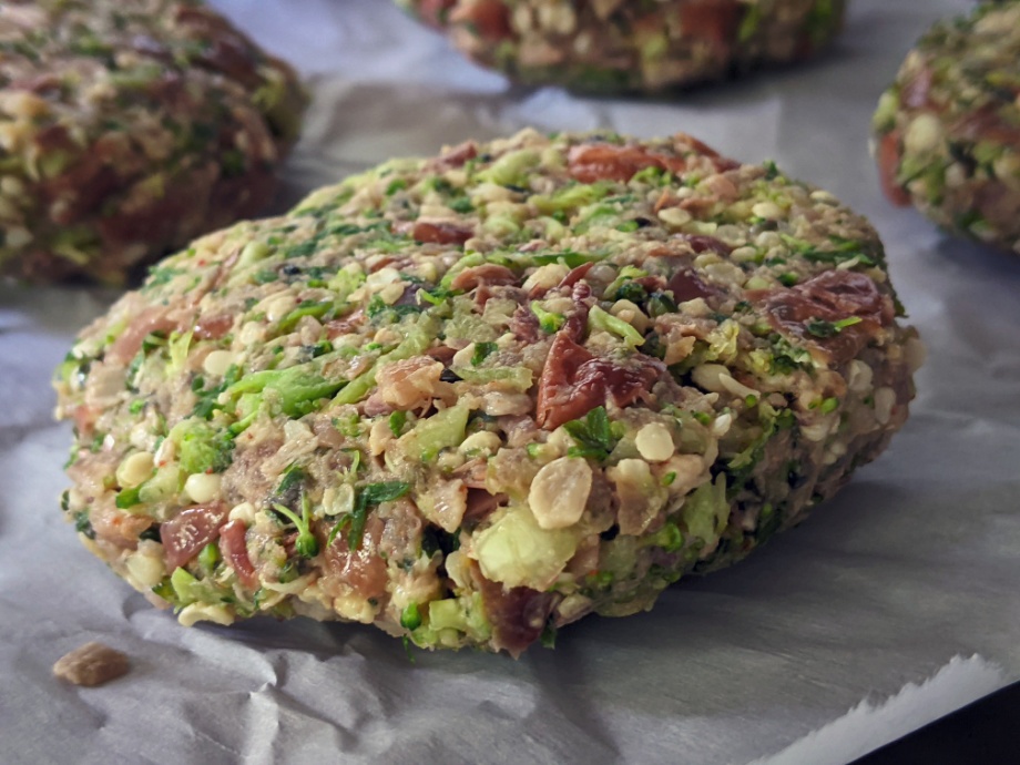 - Finally, add all other broccoli hemp burger ingredients and mix well. Set in the fridge for at least 30 minutes to firm up.